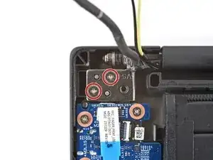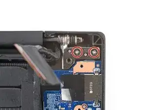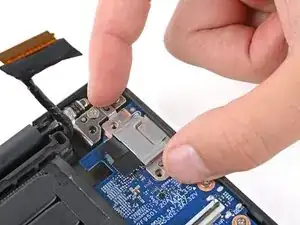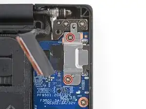 Используйте крестовую отвертку, чтобы снять два винта длиной 4.6 мм, удерживающих кронштейн порта питания.