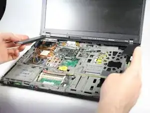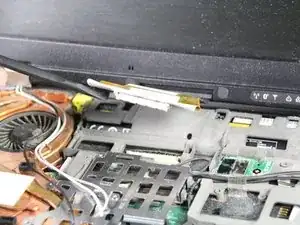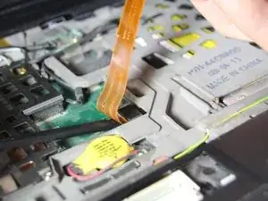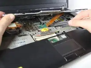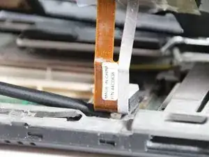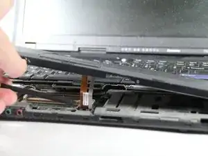 Как и панель, поднимайте клавиатуру медленно; к нижней части прикреплен ленточный кабель.