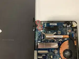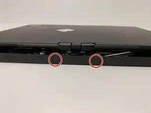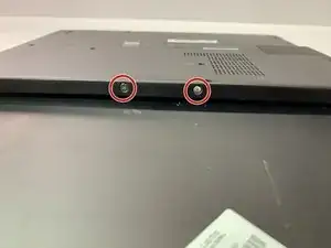 Используйте крестовую отвертку Phillips #1, чтобы отвинтить 2 винта на дне ноутбука.