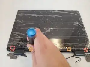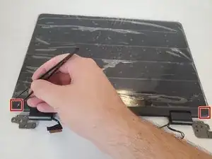 Выкрутите два винта длиной 3,3 мм, которые находились под крышками на ленте ЖК-дисплея, с помощью отвёртки Phillips #0.