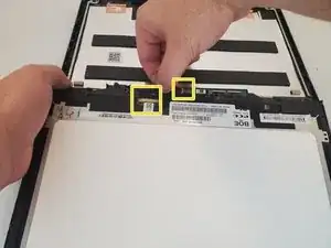 Осторожно приподнимите экран на себя. Вы можете использовать лопатку, чтобы помочь приподнять экран. На боковой стороне экрана останется ещё один разъём.