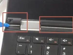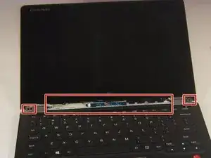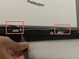 Используйте пластиковый инструмент для открытия или заостренный конец лопатки, чтобы приподнять 2 резиновые вставки в нижних левом и правом углах экрана.