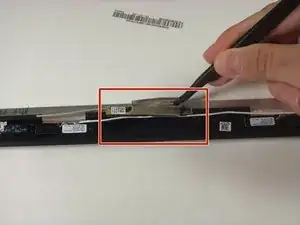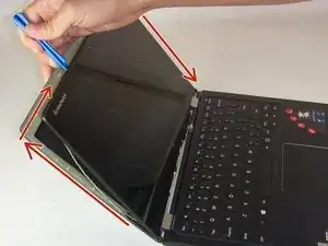 Когда пластиковый инструмент будет зажат между ними, обведите его по периметру экрана, отделяя рамку от дисплея.