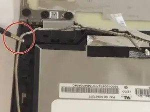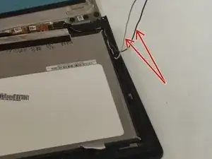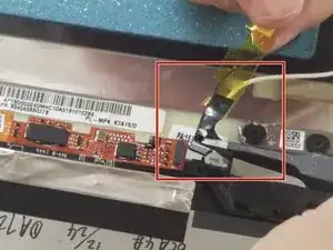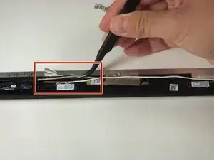 Используйте пинцет, чтобы отключить разъем рядом с верхней частью экрана.