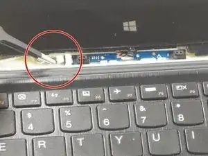Используйте пинцет, чтобы отключить черное соединение рядом с шарниром ноутбука, забирая с собой желтую ленту.