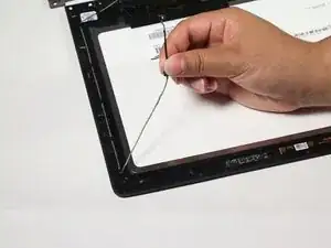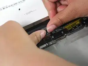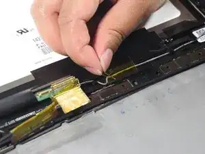Отклейте скотч, удерживающий кабель веб-камеры.