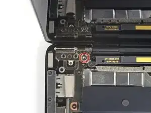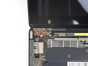 При сборке, после того как первые два винта петель будут затянуты, экран можно будет наклонять для установки оставшихся четырёх винтов петель.