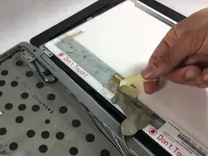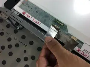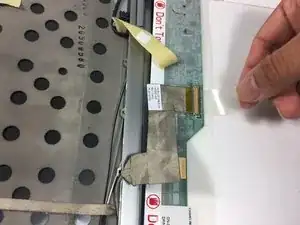 Снимите кусок скотча с задней стороны кабеля LCD.