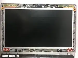 С помощью отвертки удалите четыре винта Phillips #0 по 5 мм с нижней части экрана ноутбука.