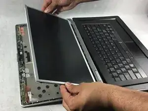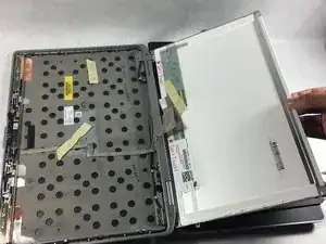 Как только скотч отсоединится, аккуратно потяните назад, чтобы отключить кабель LCD.