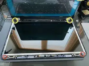 Теперь, когда рамка ослаблена, можете снять 4 винта с крестовой головкой, крепящие экран к рамке.