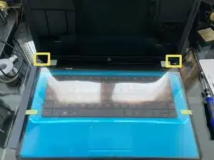 Переверните ноутбук обратно и аккуратно наклоните экран от рамки, опирая его на клавиатуру.