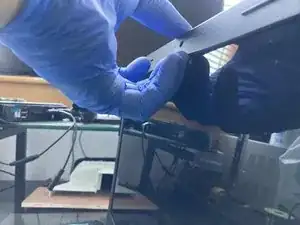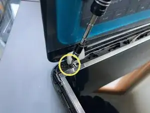 Снимите крышки винтов внизу экрана с помощью tweezers.