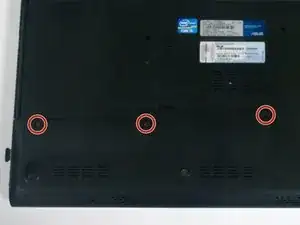 Удалите 3 винта Phillips #00, удерживающих заднюю крышку ноутбука.