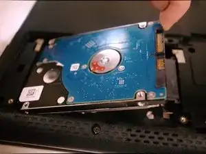 Осторожно сдвиньте жёсткий диск влево к кромке ноутбука, затем поднимите его и извлеките.