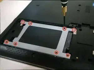 Отверните восемь маленьких винтов, удерживающих жёсткий диск.
