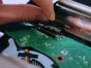 Аккуратно вытащите разъём дисплея, тянув его прямо вверх, чтобы отсоединить от материнской платы.