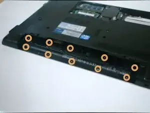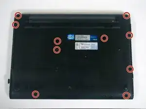 Удалите 10 винтов Phillips #00 с нижней части ноутбука.