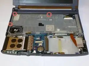 Используя ту же крестовую отвертку, что и ранее, открутите два винта, удерживающие клавиатуру