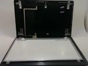 Наклоните экран назад перед удалением винтов, есть вероятность, что он может упасть и повредить вашу клавиатуру или шлейф, соединяющий его.