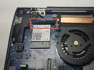 Отключите провод, соединенный в отмеченном месте. Для этого потяните за него параллельно с ноутбуком.