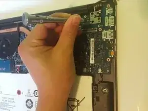 Удалите пять винтов Phillips #00 длиной 4 мм с креплений материнской платы.