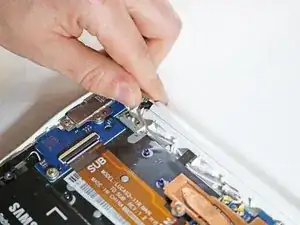 С помощью пластикового инструмента для вскрытия подденьте коннектор от контакта.