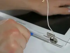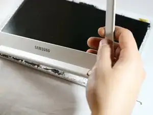 С помощью пластикового инструмента для вскрытия аккуратно отожмите корпус от экрана.