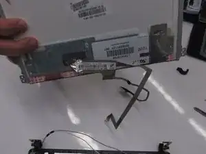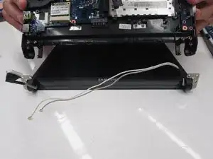 Медленно снимите корпус экрана с остальной части ноутбука, вытянув корпус экрана из гнёзд петель.