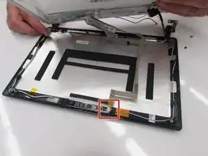 Поднимите экран из нижнего корпуса и найдите белую колодку, подключённую к нижнему корпусу.