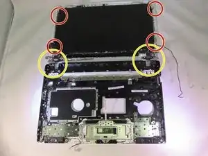 Снимите винт 6.7 мм, который удерживает узел клавиатуры на месте.