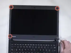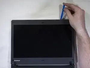 Существуют пластиковые вкладки через каждые несколько сантиметров, которые удерживают рамку на месте. Вставьте пластиковый инструмент для открывания в шов между рамкой экрана и краем ноутбука. Это позволит выскочить вкладкам и снимет рамку.