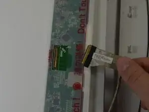 Снимите провод с задней части экрана, просто подняв и потянув его.
