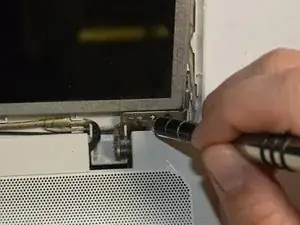 Используя отвертку PH 0, удалите винты с каждой стороны экрана. Всего шесть винтов. Каждый винт длиной 3.2 мм.