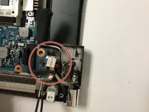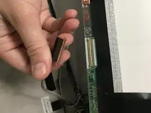Отключите серую сетчатую проводку, находящуюся под отсоединённым экраном ноутбука.