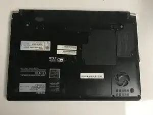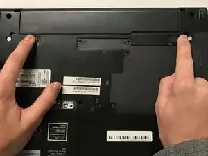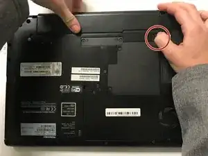 Положите ноутбук так, чтобы батарея была направлена вверх.