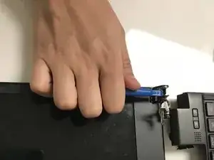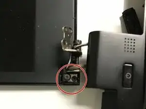 Удалите винт из металлических петель в верхних углах ноутбука, как показано на фото.