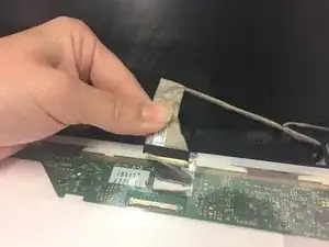 С обратной стороны экрана поднимите пластиковую пленку и разъем экрана. Извлеките разъем и аккуратно снимите экран.