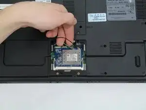 Вытяните чёрный и серый кабели из ноутбука в направлении экрана.