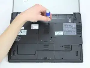 Переверните ноутбук так, чтобы нижняя часть была направлена вверх.