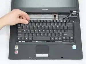 Используйте лопатку, чтобы поддеть пластиковую панель между клавиатурой и экраном.