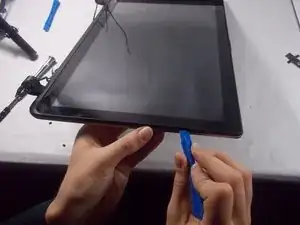 Используйте пластиковый инструмент для вскрытия, чтобы аккуратно поддеть пластиковую накладку монитора.