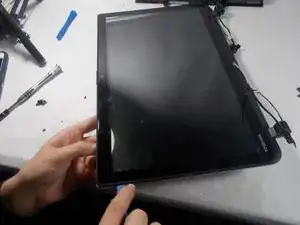 Осторожно потяните экран, чтобы отсоединить монитор от шарниров.
