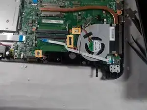Отключите все шлейфы и кабели, отмеченные оранжевым.