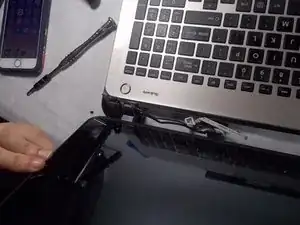 Используйте пластиковый инструмент для вскрытия, чтобы снять заднюю крышку с ноутбука.