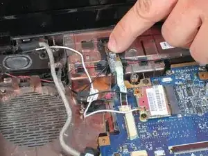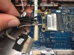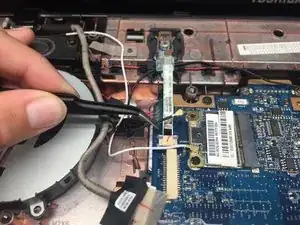 Отключите шнур передачи данных веб-камеры с помощью пинцета.