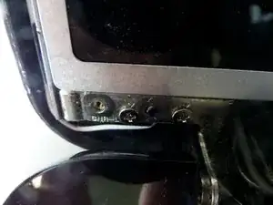Найдите два винта в нижних углах экрана.