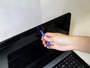 Возьмите инструмент для открытия и аккуратно вставьте его под пластиковую рамку экрана. Осторожно проведите инструментом между пластиковой рамкой и экраном, пока не почувствуете изменение давления, ощущение, что пластиковые защелки освобождаются.