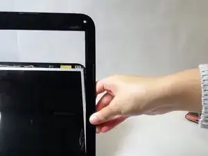 Повторите этот процесс вдоль внутренних краев пластиковой рамки. Как только все пластиковые защелки будут отщелкнуты, пластиковая рамка должна упасть с экрана.