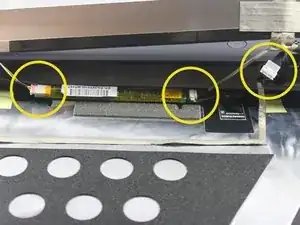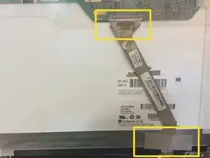 Удалите ленту в местах, показанных на картинке, чтобы отсоединить экран от шлейфа.